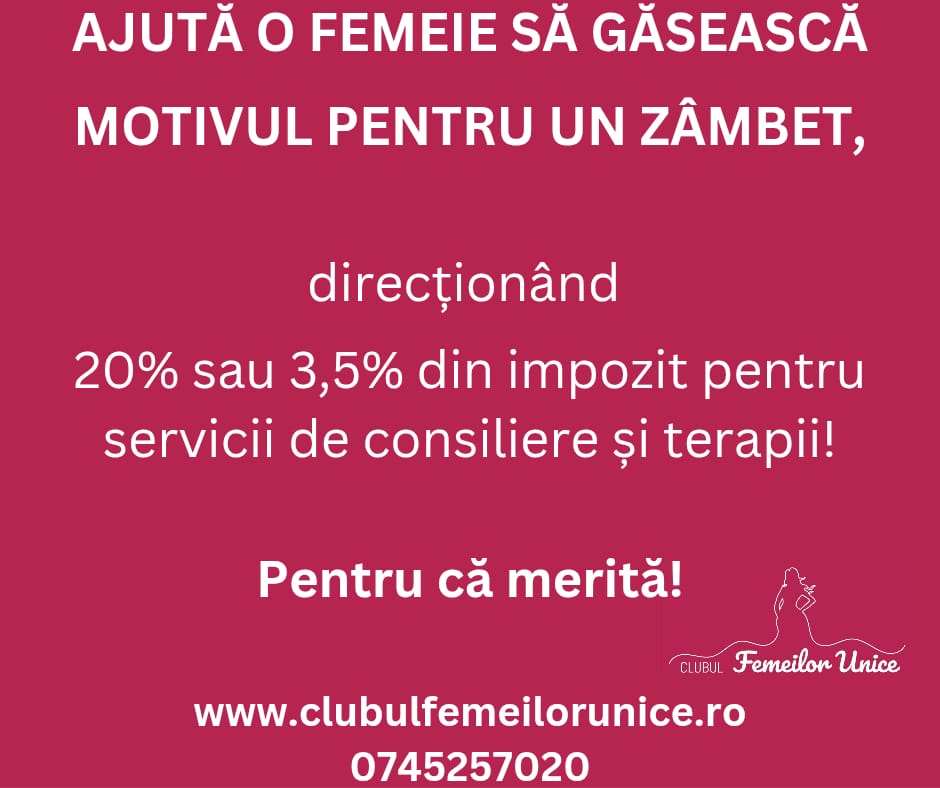Context și motivațieÎn viața de zi cu zi, multe femei simt nevoia să fie ascultate, să își împărtășească gândurile și emoțiile, însă se confruntă adesea cu frica de a fi judecate sau nu găsesc un interlocutor potrivit. La Clubul Femeilor Unice identificăm această nevoie și dorim să creăm un spațiu sigur și empatic, în care femeile să poată fi ascultate cu atenție, fără să li se ofere sfaturi sau să fie judecate. Scopul proiectuluiCrearea unui spațiu de ascultare activă, empatică și confidențială, dedicat femeilor participante la serile feminine de joi, pentru a le oferi suport emoțional și un sentiment de sprijin comunitar. Obiectivele proiectuluiSă oferim un cadru sigur și discret pentru femeile care doresc să fie ascultate.Să formăm o echipă de voluntare pregătite să asculte activ,...