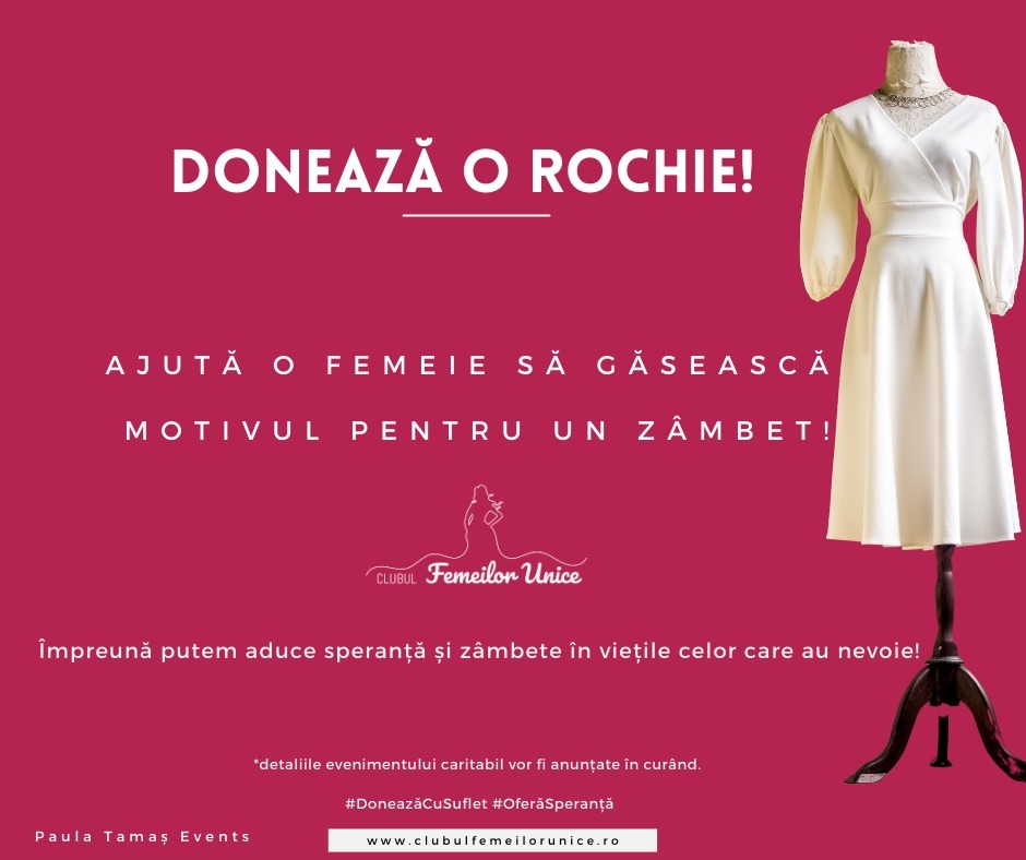 Cine nu are în garderobă o rochie frumoasă, nepurtată sau purtată o singură dată, care ar putea aduce bucurie altei femei? Doneaz-o!